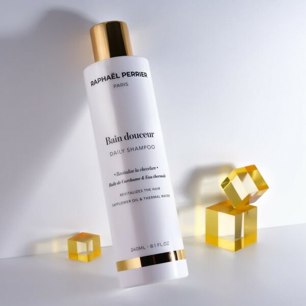 Le bain douceur quotidien à l’eau thermale et à l’huile de carthame élimine les impuretés, apaise le cuir chevelu et prépare la chevelure aux autres soins. Sa formule douce et légère hydrate le cheveu en profondeur sans l’alourdir. Les cheveux sont brillants, souples et parfaitement nourris. Cette formule lavante d’exception dépose sur la chevelure une mousse onctueuse et offre une expérience sensorielle unique aux notes hespéridées et boisées.